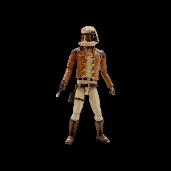 Accessories: Removable pilot helmet, holster, blaster, and leg computer.