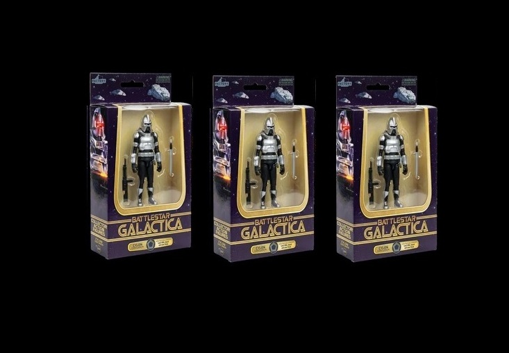 3 x 3.75″ scale Cylon Centurion action figures. Each Cylon Centurion features thirteen points of articulation, and includes a sword, scabbard, laser pistol and rifle accessory.