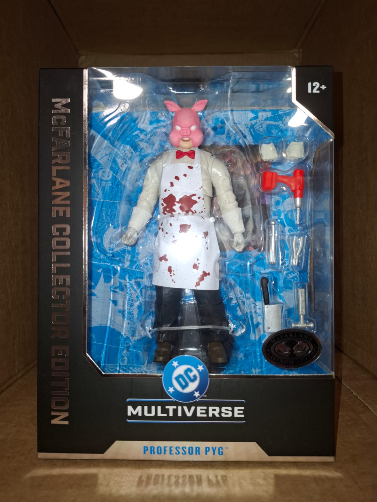 Bringing back the classic looks of heroes and villains across DC Comics with the DC McFarlane Collector Edition series of action figures! This DC McFarlane Collector Edition Wave 13 #52 Professor Pyg Batman 7-Inch Scale Action Figure is designed with ultra articulation with up to 22 moving parts for full range of posing. This figure comes packaged in a premium window box and includes a power drill, cleaver, 3x surgical tools, 2x extra hands, a soft goods apron and display base. Also included is a collectible art card with character art on the front, and character biography on the back. This figure measures approximately 7 1/4-inches tall. Ages 12 and up!