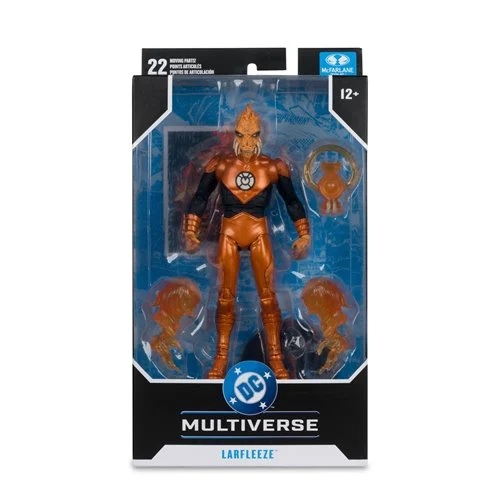 The DC Multiverse Wave 26 Larfleeze DC Classic 7-Inch Scale Action Figure is designed with ultra articulation with up to 22 moving parts for full range of posing. Larfleeze includes 2x flame effects, 1x power battery, and a display base. Also included is a collectible art card with character artwork on the front, and character biography on the back. This figure measures approximately 7 1/3-inches tall. Ages 12 and up!