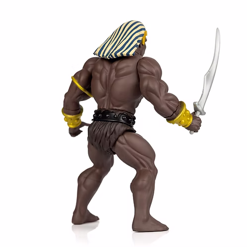 Blending the atmosphere of the original illustration with the spirit of classic 1980s toys, Emiliano Santalucia and Peer Brauner bring one of Frazetta’s most striking supporting characters into the 5.5” retro figure format. The Guard embodies the raw strength and silent menace that define the world of the Egyptian Queen.