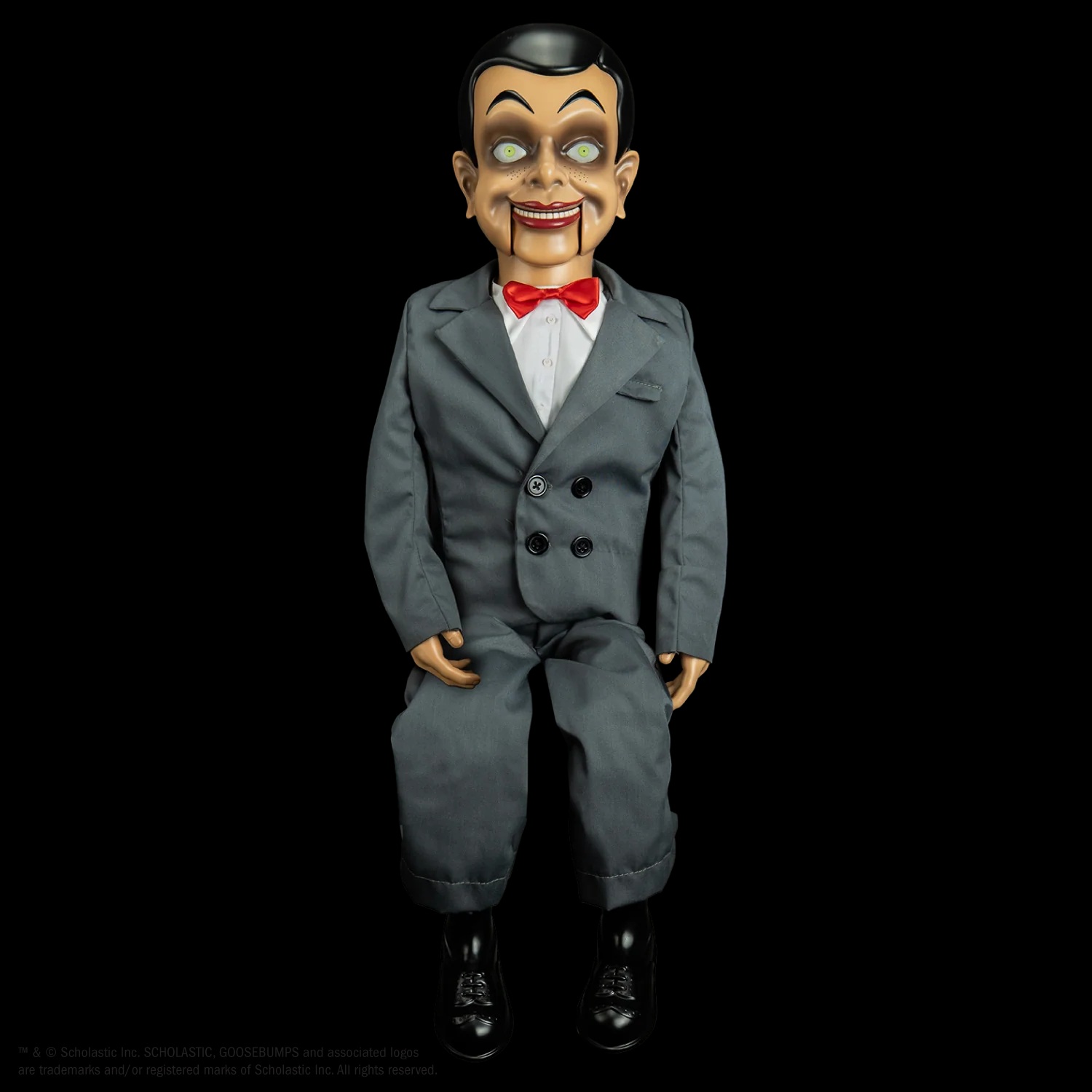This isn’t just a static prop—Slappy is a fully functional ventriloquist dummy, complete with a moveable mouth and soft limbs for posing. Crafted from durable plastic with puppeteering access through the back, he’s dressed in book-accurate tailored clothing for an authentic, unsettling finish.