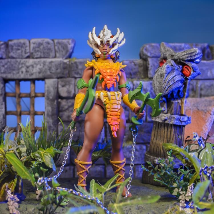 Figure comes with chained dragon hunter axes, removable headdress, harness and belt.