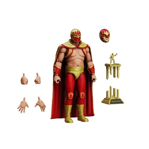 This stunningly beautiful 1:12 scale figure is ready for action! With more than 32 points of articulation, you can recreate your favorite matches with ease. The Legends of Lucha Libre Wave 5 El Solar Premium Action Figurei ncludes removable ring entrance shoulder pads with cape and 3x sets of interchangeable hands.