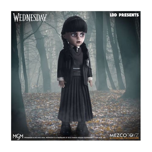 The Mezco Living Dead Dolls – Wednesday Nevermore Academy Uniform figure stands 10” tall and boasts 5 points of articulation, making it a perfect addition to any collection. She comes packaged in a window box for easy display and protection.