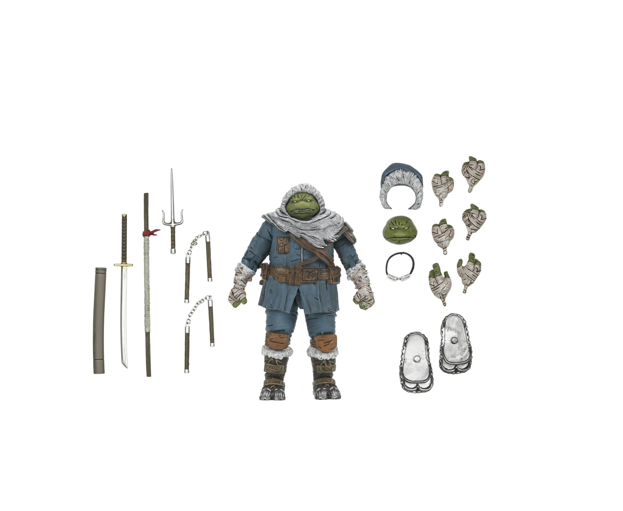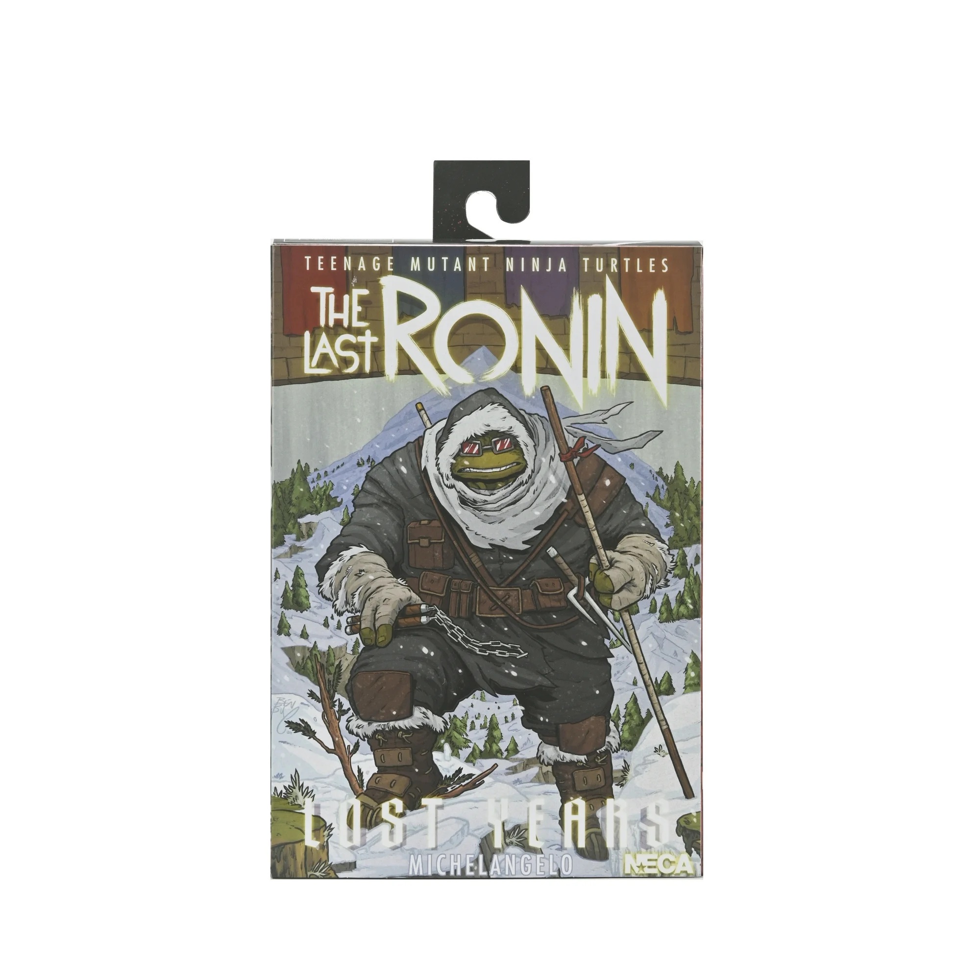 From the Teenage Mutant Ninja Turtles comic book series, The Last Ronin – The Lost Years! The tale of the Last Ronin’s first mission continues as new secrets from the Turtles’ past are revealed. After losing his family, Michelangelo goes on a soul-searching journey to find peace. Based on issue #1, this 7-inch scale action figure includes interchangeable heads, hands, and hoods. Plus, goggles, removable snowshoes, and all the Turtles’ signature weapons. Comes in collector-friendly packaging with original illustrations by The Last Ronin artist Ben Bishop.