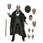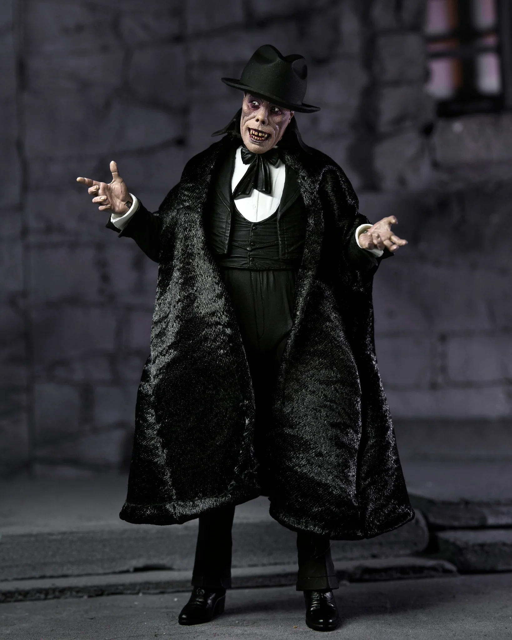 Celebrating more horror legends, NECA is excited to reveal The Phantom of the Opera! Starring Lon Chaney, the 1925 silent movie was famed for the shocking appearance of the Phantom, which Chaney created himself and kept secret until the premiere. Almost a century later, the thriller is still critically acclaimed and was added to the United States National Film Registry in 1988 for its historical and cultural significance. The 7” scale figure captures the Phantom both disguised and unmasked with five interchangeable heads, and also includes fabric cloak, bamboo stick and hat accessories. Display-friendly window box packaging with opening front flap.
