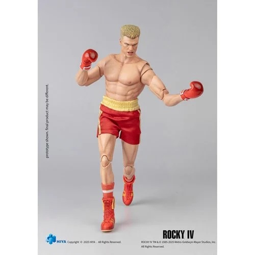 The Silent Power of the Soviet Champion Ivan Drago! From Rocky IV (1985), the indomitable Soviet boxer Ivan Drago joins Hiya Toys’ Exquisite Super Series as a 1:12 scale action figure. In the classic film Rocky IV, Apollo Creed emerges from retirement for one last fight, ready to face the formidable Soviet boxer Ivan Drago. Ivan’s cold precision and overwhelming power made him one of the most iconic rivals in boxing film history. Standing approximately under 6 1/3-inches tall, this Exquisite Super Series 1:12 scale figure faithfully recreates Ivan’s determined expression and steel-like muscle definition, capturing his powerful presence during matches. His gloves, red-and-gold boxing shorts, and matching boots reflect the pride and glory of the Soviet champion. Beneath his icy expression, Ivan’s mechanical precision and calculated brutality made him a formidable opponent, embodying the cold efficiency that defined him.