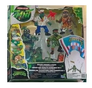 This is a 4-pack of classic Teenage Mutant Ninja Turtles action figures from Playmates. The Sewer Heroes set includes figures with parachutes and is designed in the classic style of the series.