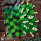 - The 18″ square chess board features a wood-like frame around a playing surface of ‘‘grass’ in textured shades of green, surrounded by Minecraft logos in a metallic finish, suitable for the game of kings (and Steves).
