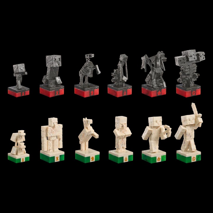 - This set includes 32 game pieces up to 4″ tall with textures and finishes that resemble marbled stone, obsidian, redstone or emerald.