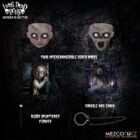 An unsettling blend of delicate and dreadful, Posey is possessed by two interchangeable “death mask” face plates and moveable eyes that see all. She wears her signature weathered dress and comes with an alternate robe with an integrated posing wire in the hood.