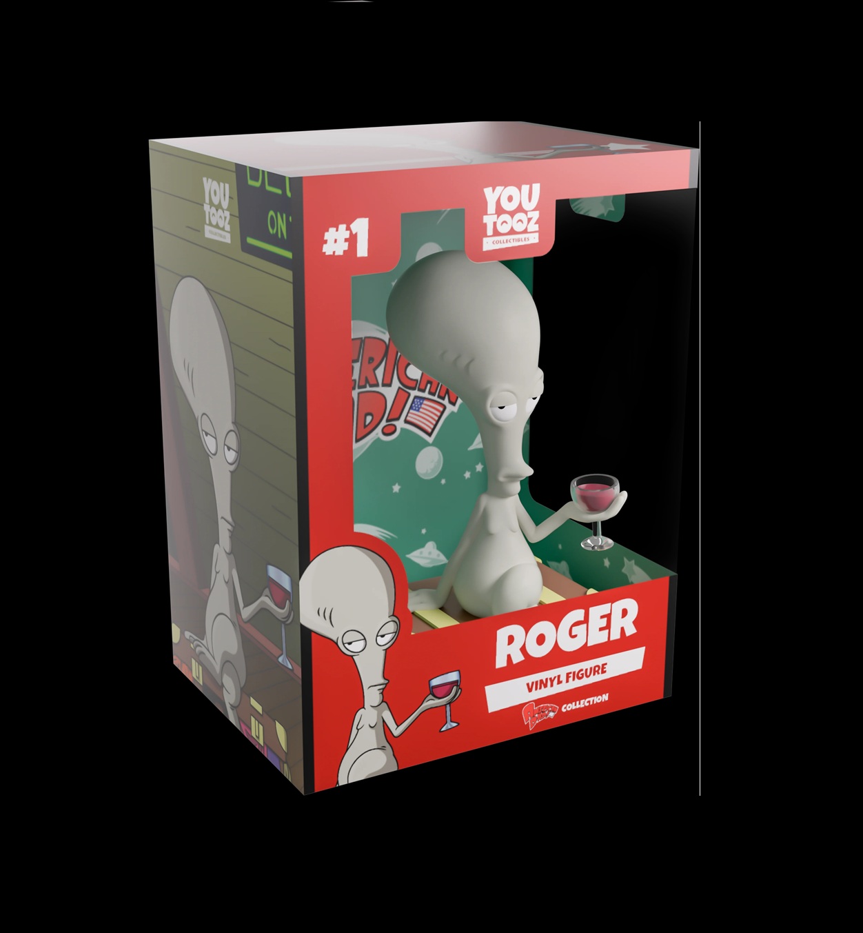 Roger’s here, and honestly, we’ve never been happier! The truest diva of divas has landed for his new role as a Youtooz collectible. Sitting cross-legged at 4.2 inches tall atop a costume trunk with colorful clothes poking out from the opening, Roger holds a glass of red wine in his raised left hand as a look of distaste crosses his face as if he just saw Francine’s newest MLM. The exterior of his packaging has been illustrated to showcase Roger behind a bar in his attic, while the interior of the box is green with a pattern of spaceships, stars and planets. The protective sleeve is red with a star shooting across the bottom of the box as his figure can be seen through the large clear window at its front. This collectible ships in a matte, embossed, protective outer sleeve and a custom-sized plastic protector for maximum protection during shipping.