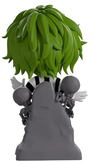 Beetlejuice, Beetlejuice, Beetlejuice! And with that, we’ve summoned the ghost with the most to Youtooz for his diabolical debut! At 4.7 inches tall and sitting atop a grey tombstone that has a pair of skeletons crawling out from the top, a sly smile crosses his dirty, stained face as an eyebrow raises playfully over purple-shaded eyes. With long straggly green hair hanging messily from his pale head, he holds his hands out to the sides and wears a black and white striped suit along with thick boots. The exterior of his packaging sees him sitting in a gloomy graveyard with a sign pointing directly at him, while the interior is filled with bright green flyers. The protective sleeve is then covered on diagonal purple and black lines with green splattered across them as his figure can be seen through the large clear window at the packaging’s front. This collectible ships in a matte, embossed, protective outer sleeve and a custom-sized plastic protector for maximum protection during shipping.