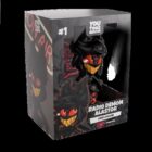 Looks like you’ve tuned in at just the right time for Radio Demon Alastor’s Youtooz debut! Cast in dark shadows with a huge yellow toothy smile stretching across his face under vibrant red eyes that glance upwards as his hair sweeps to the side in a thick fringe and raises up in horned points, he stands at 5.3 inches tall with an arm flung out as he holds a long cane topped with and old-school microphone attached. Wearing a long coat with a pointed lapel and a bow tie on his neck, around his boots stand a trio of his minions ready to do his bidding. The exterior of his packaging sees a dilapidated radio tower reaching into a dark sky as an ‘On Air’ sign buzzes vibrantly, while the interior is covered in an elegant wallpaper pattern which continues onto the protective sleeve that shows off a dark cityscape as his figure can be seen through the large clear window at the packaging’s front. This collectible ships in a matte, embossed, protective outer sleeve and a custom sized plastic protector for maximum protection during shipping.
