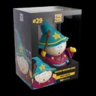 Cartman cast a spell on Youtooz to force his return! Truly, we were powerless in his presence! Raising his arms up and casting a spell at 4.6 inches tall, he holds a long wooden staff in his right hand as a pointed blue and yellow wizard hat rests atop his head, with the floppy brim hanging over his face. Wearing a maroon robe with a bright blue belt wrapping around his wide waist, a long blue cloak hangs from his shoulders. The exterior of his packaging looks like an imposing castle with lighting streaking through the sky. The interior is then a simple greyscale repeating pattern of the South Park Logo, while the protective sleeve sees the four boys’ faces peeking from the corners over a rich black background as his figure can be seen through the large clear window at the packaging’s front. This collectible ships in a matte, embossed, protective outer sleeve and a custom-sized plastic protector for maximum protection during shipping.