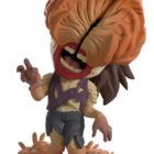 Shambling forward through a growth of sprouting spores to stand at 5 inches tall with their knees bent inwards and a menacing hand reaching out, their once human face has been fully taken over by the infection and splits open at the center with thick orange fungal ridges encasing their head. With their blood-covered mouth open wide as they make a horrifying clicking sound, tattered clothes hang off a beige and brown body which is covered in sprouting growths. The exterior of their packaging sees the Clicker lurking through the dark remnants of an abandoned store. The interior is a stark white and the protective sleeve casts an eerie orange glow of a ruined dilapidated city as their figure can be seen through the large clear window at the packaging’s front. This collectible ships in a matte, embossed, protective outer sleeve and a custom-sized plastic protector for maximum protection during shipping.